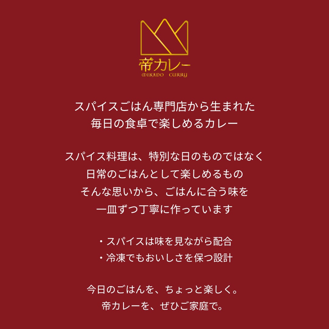 スパイスの香りとコクを大切にし、ごはんに合う味に仕上げました。
