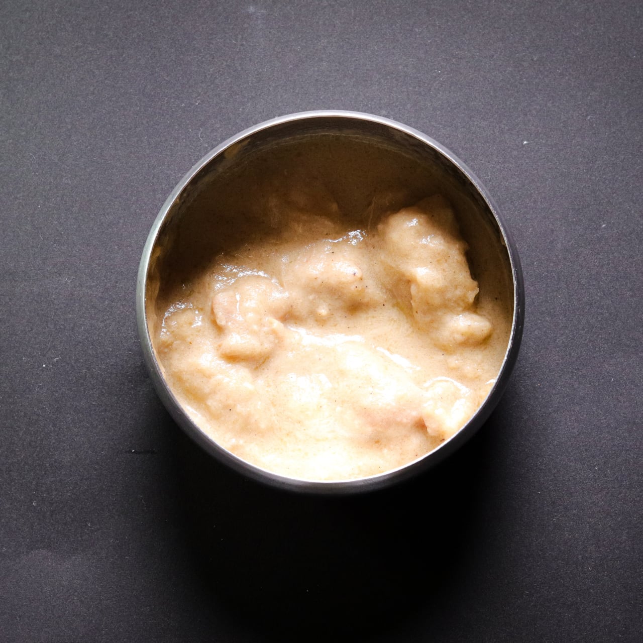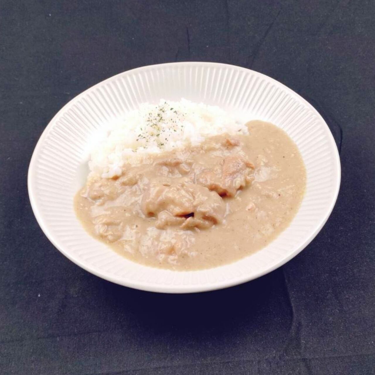 カシューナッツ、ヨーグルト、生クリームを使用した、濃厚でクリーミーな白いチキンカレーです。